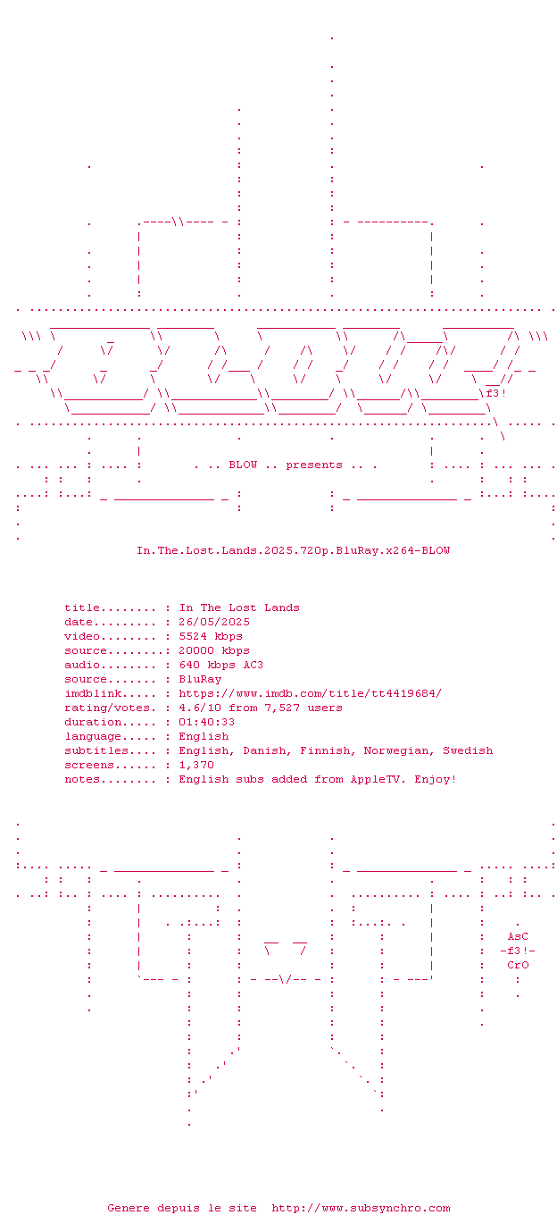Voir le nfo de la release In.The.Lost.Lands.2025.720p.BluRay.x264-BLOW