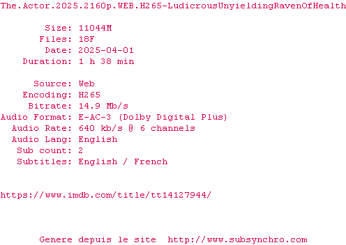 Voir le nfo de la release The.Actor.2025.2160p.WEB.H265-LudicrousUnyieldingRavenOfHealth