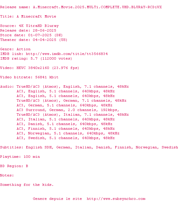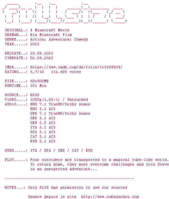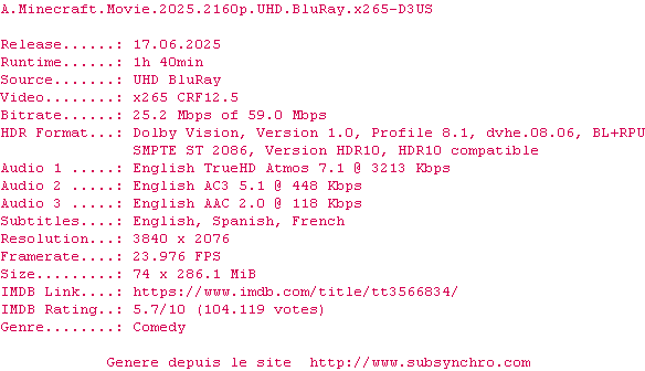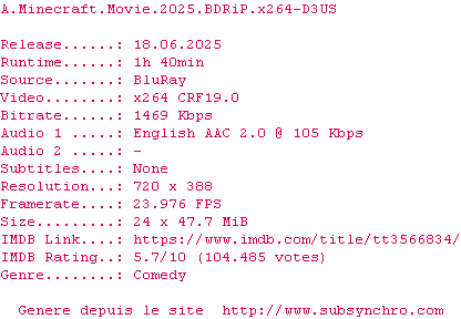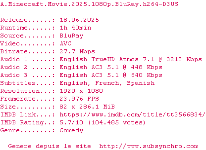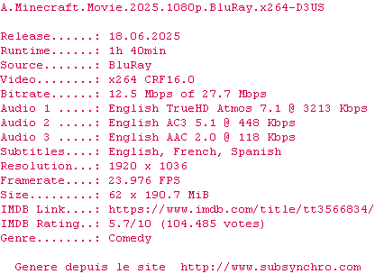 Bienvenue dans l’univers de Minecraft où la créativité est essentielle à la survie ! Quatre outsiders – Garrett, Henry, Natalie et Dawn – sont soudainement projetés à travers un mystérieux portail menant à La Surface – un incroyable monde cubique qui prospère grâce à l’imagination. Pour rentrer chez eux, il leur faudra maîtriser ce monde (et le protéger de créatures maléfiques comme les Piglins et les Zombies), tout en s’engageant dans une quête fantastique aux côtés de Steve, expert fabricateur. Cette aventure les poussera à être audacieux et à développer leur créativité. Autant de facultés dont ils auront besoin pour s’épanouir dans le monde réel.
