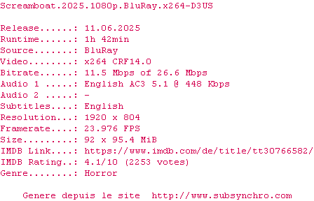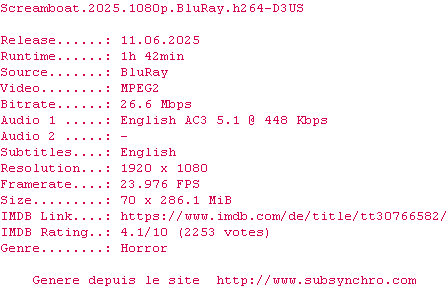Voir le nfo de la release Screamboat.2025.1080p.BluRay.H264-D3US