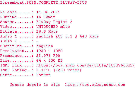 Voir le nfo de la release Screamboat.2025.1080p.BluRay.x264-D3US