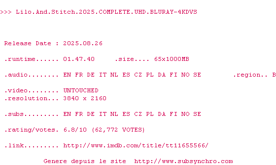 Il y a 1 commentaire pour le film #31206 !Le commentaire de SubSynchro