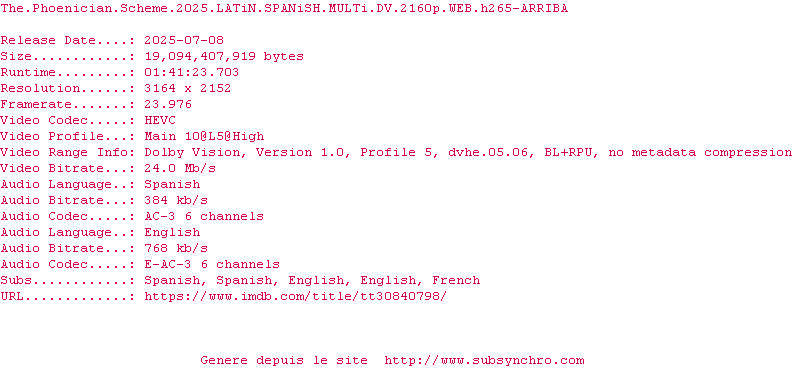 El esquema fenicio / Der phönizische Meisterstreich (The Phoenician Scheme) , realise en 2025