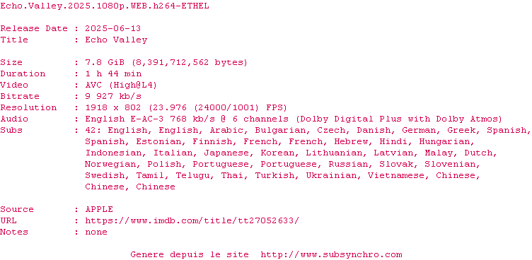 Kate fait face à une tragédie personnelle alors qu'elle possède et entraîne des chevaux à Echo Valley, un endroit isolé et pittoresque. Lorsque sa fille Claire arrive sur le pas de sa porte, effrayéee et tremblante.
