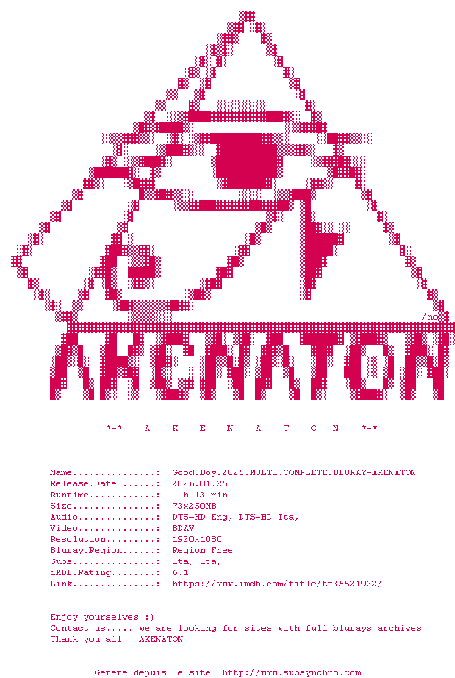 Telechargez le RSS « Fichier de la release Good.Boy.2025.MULTI.COMPLETE.BLURAY-AKENATON »
