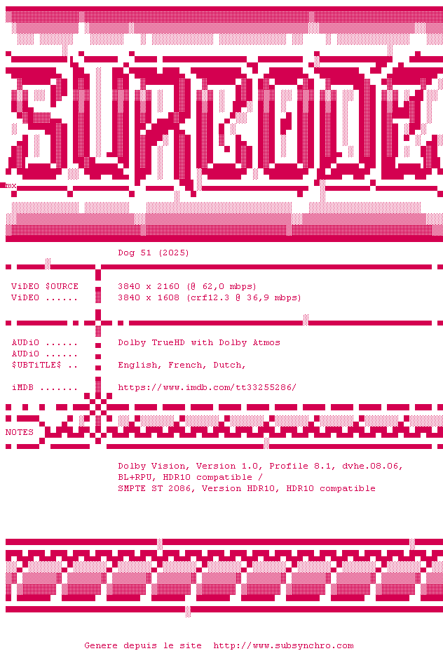 Telechargez le RSS « Fichier de la release Dog.51.2025.2160p.UHD.BluRay.x265-SURCODE »