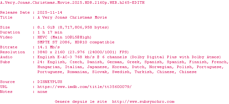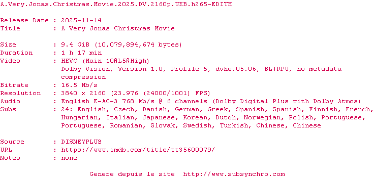 Kevin, Joe et Nick Jonas font face à une multitude d’imprévus lors de leur voyage pour se rendre de Londres à New York afin de célébrer les fêtes de fin d’année avec leur famille.