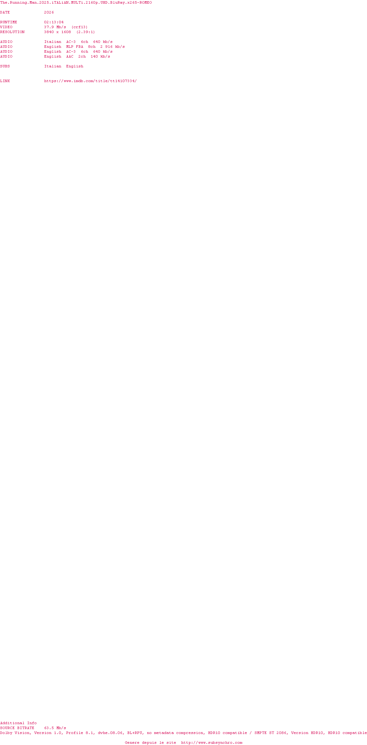 Telechargez le RSS « Fichier de la release The.Running.Man.2025.ITALiAN.MULTi.2160p.UHD.BluRay.x265-ROMEO »