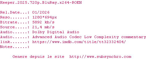 Telechargez le RSS « Fichier de la release Keeper.2025.720p.BluRay.x264-ROEN »