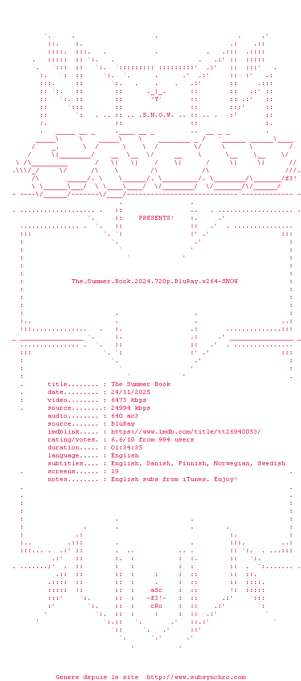 Voir le nfo de la release The.Summer.Book.2024.BDRip.x264-SNOW