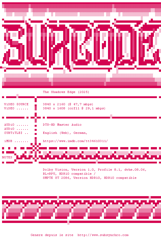Telechargez le RSS « Fichier de la release The.Shadows.Edge.2025.2160p.UHD.BluRay.x265-SURCODE »
