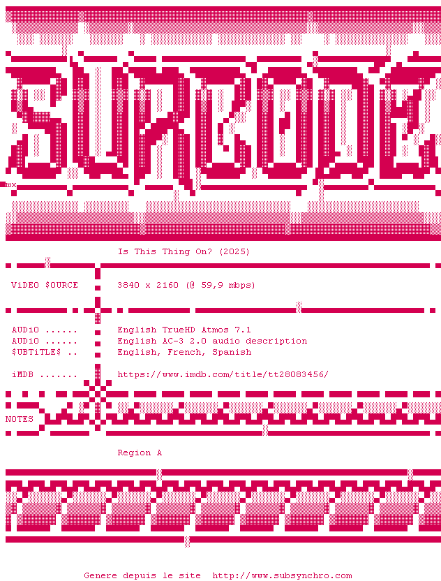 La release Is.This.Thing.On.2025.COMPLETE.UHD.BLURAY-SURCODE est en 4K