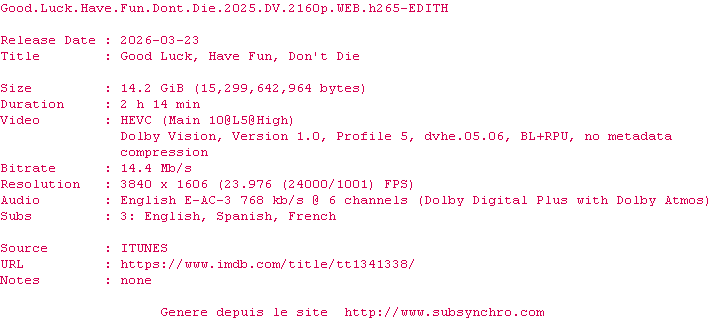 La release Good.Luck.Have.Fun.Dont.Die.2025.DV.2160p.WEB.H265-EDITH est en 4K