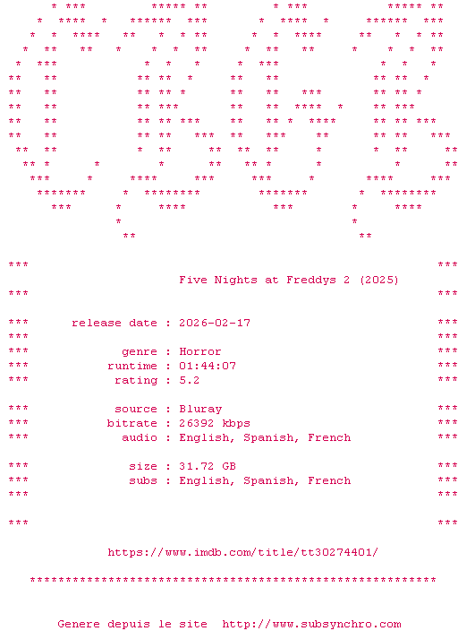 Telechargez le RSS « Fichier de la release Five.Nights.At.Freddys.2.2025.COMPLETE.BLURAY-CBGB »