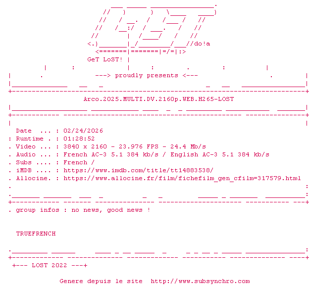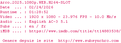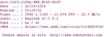 En 2075, une petite fille de 10 ans, Iris, voit un mystérieux garçon vêtu d'une combinaison arc-en-ciel tomber du ciel. C'est Arco. Il vient d'un futur lointain et idyllique où voyager dans le temps est possible. Iris le recueille et va l'aider par tous les moyens à rentrer chez lui.