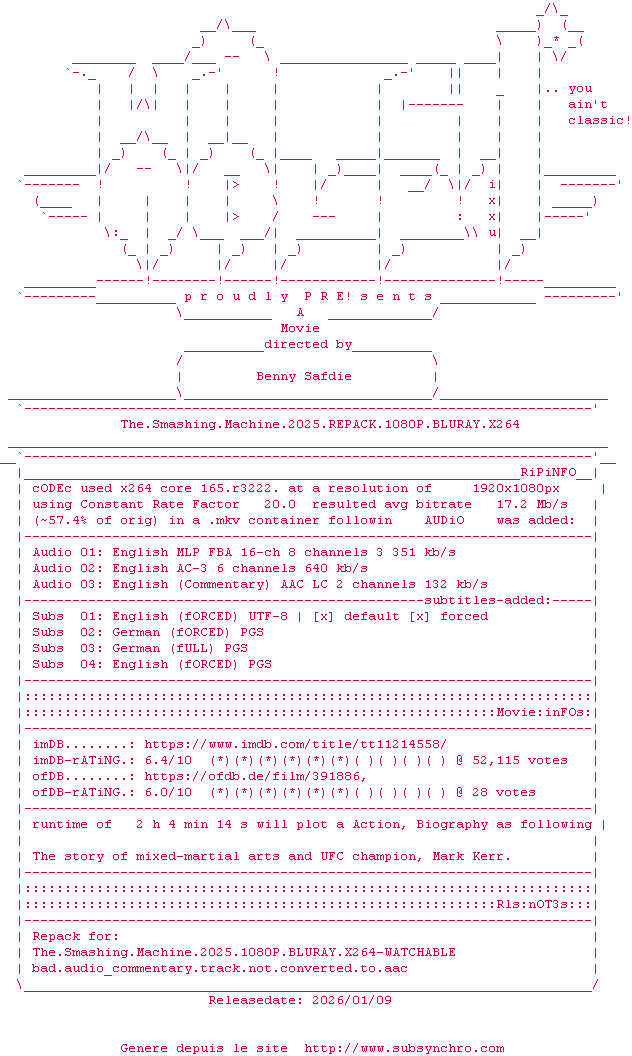 NFO de The.Smashing.Machine.2025.REPACK.1080P.BLURAY.x264-WATCHABLE