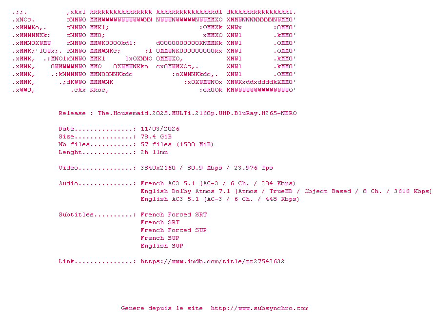 Telechargez le RSS « Fichier de la release The.Housemaid.2025.MULTi.2160p.UHD.BluRay.H265-NERO »