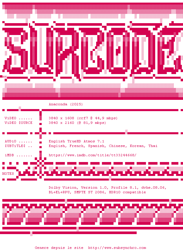 La release Anaconda.2025.2160p.UHD.BluRay.x265-SURCODE est en 4K