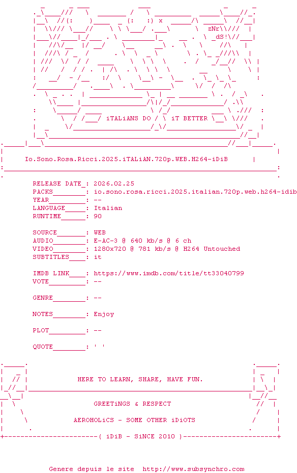 Telechargez le RSS « Fichier de la release Io.Sono.Rosa.Ricci.2025.ITALiAN.720p.WEB.H264-iDiB »