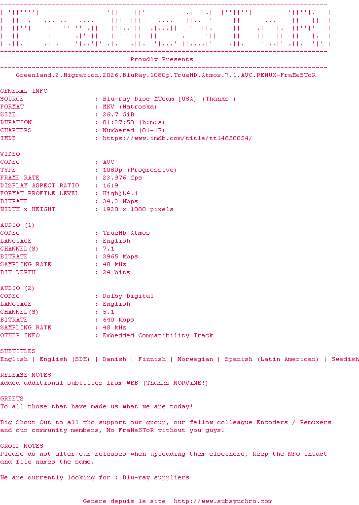 Greenland.2.Migration.2026.BluRay.1080p.TrueHD.Atmos.7.1.AVC.REMUX-FraMeSToR