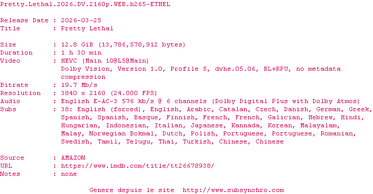 Y avez-vous pense ? Nous proposons déjà 1329 sous-titres pour le film Pirouette fatale. Avez-vous essaye de voir si ces sous-titres etaient compatibles avec cette release ? On vous laisse le soin de tester cela pour nous et de contribuer au site en postant le sous-titre en cas de compatiblite constatee !