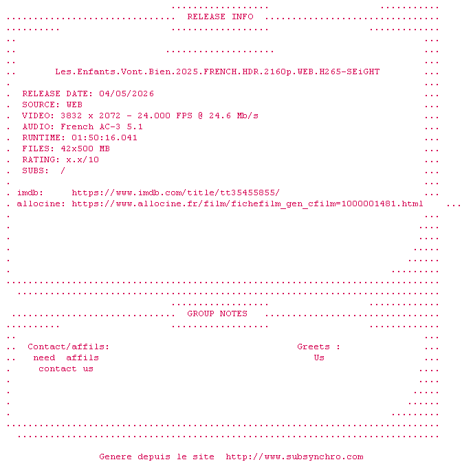 La release Les.Enfants.Vont.Bien.2025.FRENCH.2160p.WEB.H265-SEiGHT est en 4K