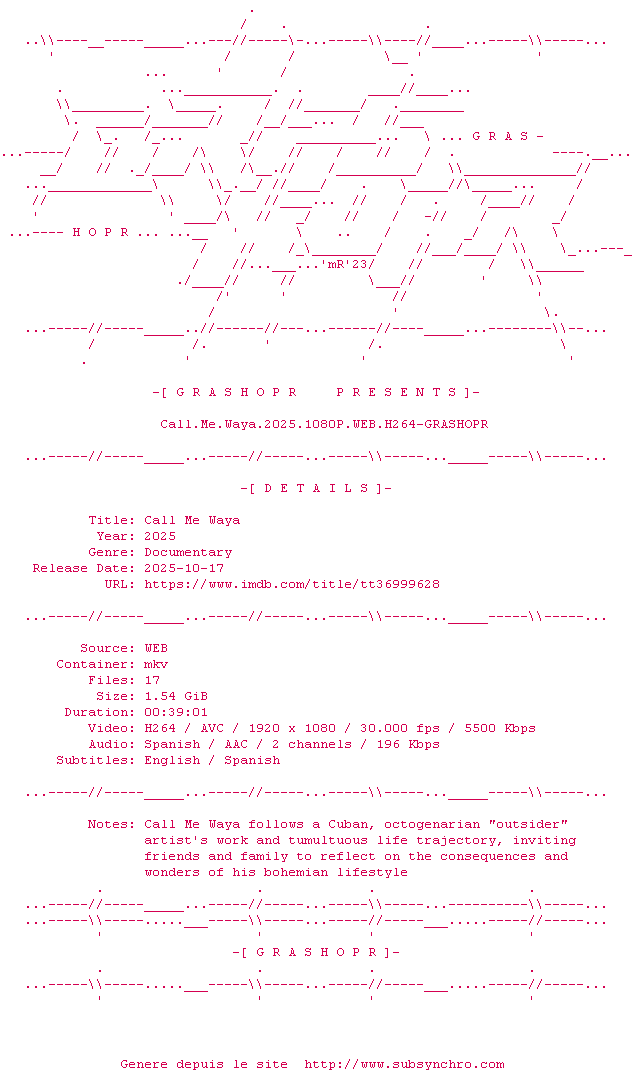 Telechargez le RSS « Fichier de la release Call.Me.Waya.2025.1080P.WEB.H264-GRASHOPR »