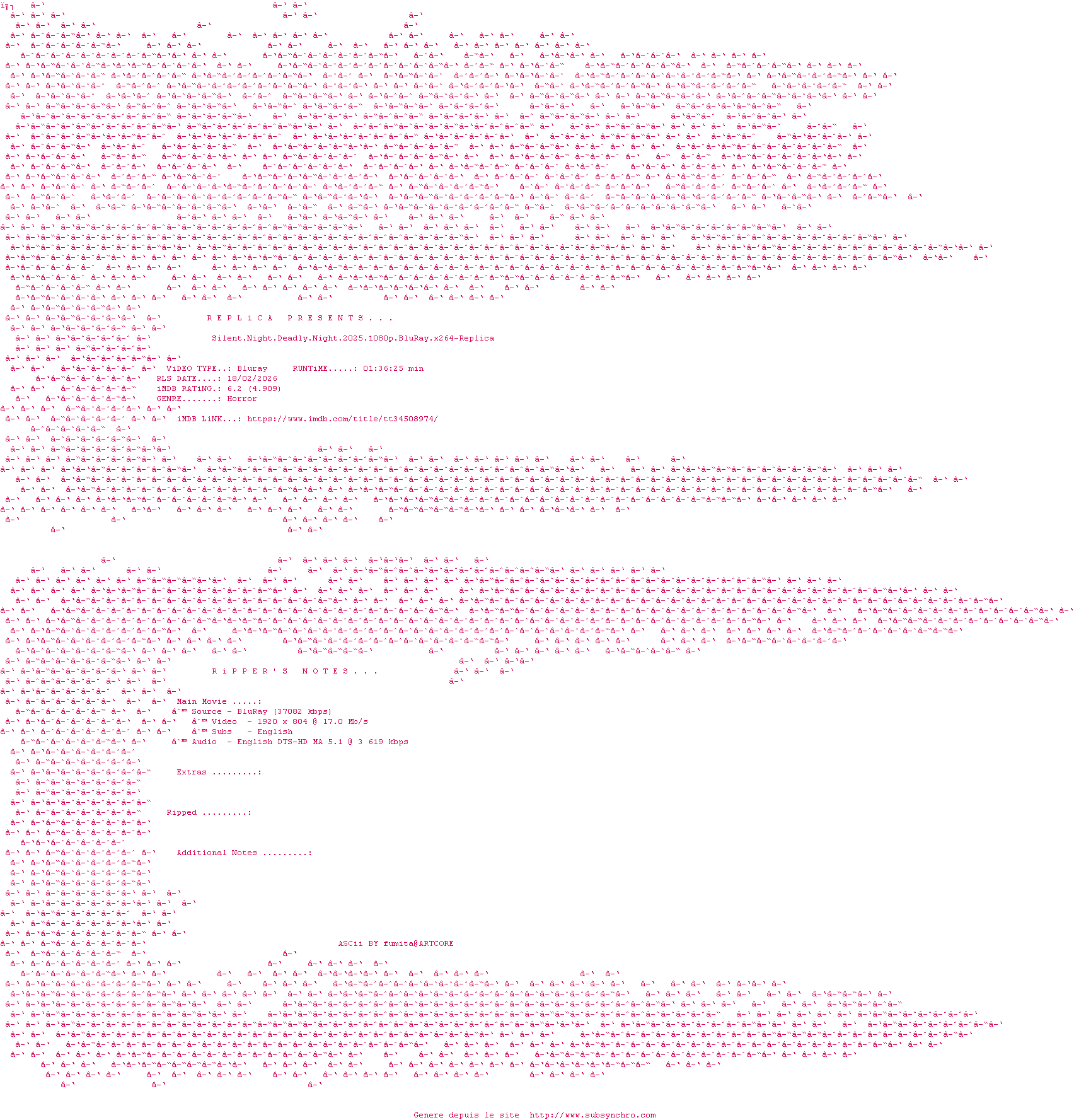 Telechargez le RSS « Fichier de la release Silent.Night.Deadly.Night.2025.1080p.BluRay.x264-Replica »