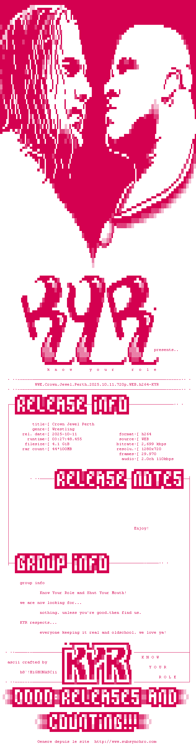 Telechargez le RSS « Fichier de la release WWE.Crown.Jewel.Perth.2025.720p.WEB.H264-KYR »