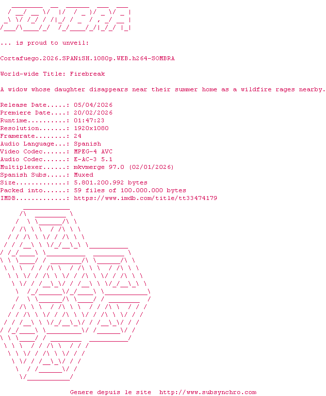 Y avez-vous pense ? Nous proposons déjà 1661 sous-titres pour le film Coupe-feu / Firebreak. Avez-vous essaye de voir si ces sous-titres etaient compatibles avec cette release ? On vous laisse le soin de tester cela pour nous et de contribuer au site en postant le sous-titre en cas de compatiblite constatee !