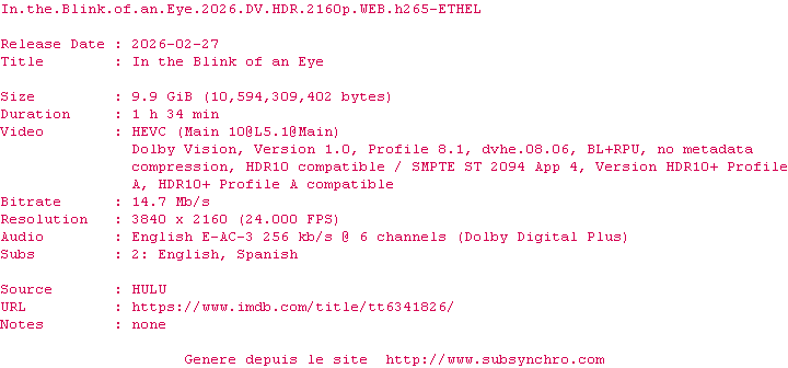 La release In.The.Blink.Of.An.Eye.2026.DV.HDR.2160p.WEB.H265-ETHEL est en 4K