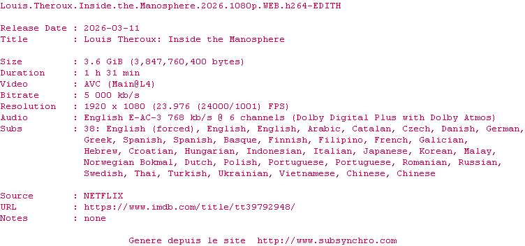 Telechargez le RSS « Fichier de la release Louis.Theroux.Inside.The.Manosphere.2026.1080p.WEB.H264-EDITH »