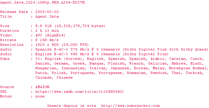 Telecharger le ZiP contenant NFO, Affiche, Sous-titre (*.srt)