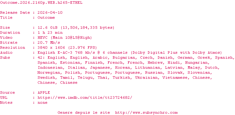 La release Outcome.2026.2160p.WEB.H265-ETHEL est en 4K