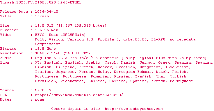 La release Thrash.2026.DV.2160p.WEB.H265-ETHEL est en 4K