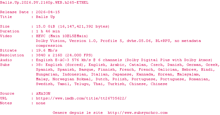 La release Balls.Up.2026.DV.2160p.WEB.H265-ETHEL est en 4K