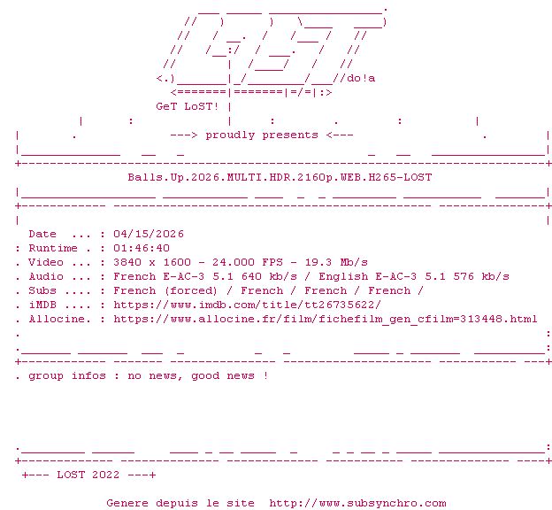 La release Balls.Up.2026.MULTI.HDR.2160p.WEB.H265-LOST est en 4K