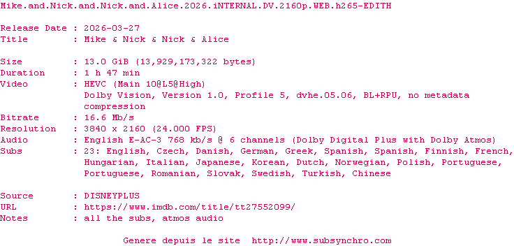 NFO de Mike.And.Nick.And.Nick.And.Alice.2026.iNTERNAL.DV.2160p.WEB.H265-EDITH