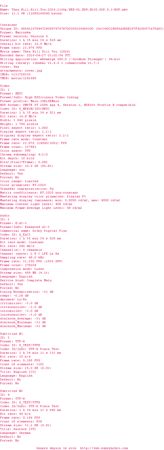 Dans THEY WILL KILL YOU, une jeune femme doit survivre toute une nuit au Virgil, le repaire mystérieux d’une secte démoniaque qui se révèle rapidement être un piège mortel. Les adeptes, eux, comptent bien faire de la malheureuse leur prochaine offrande… Une comédie d’horreur et d’action explosive.