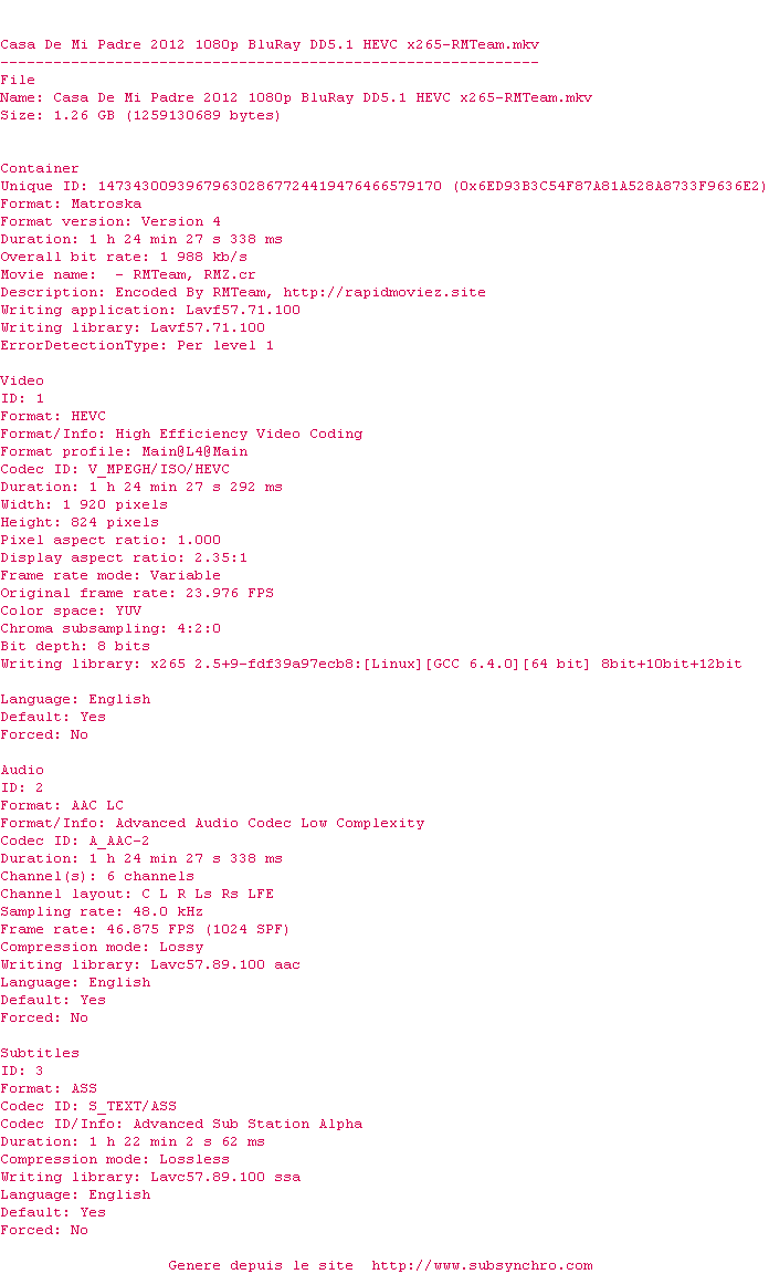 Voir le nfo de la release The.Departed.2006.REMASTERED.1080p.BluRay.HEVC.x265.5.1-BONE