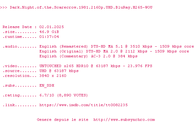 Sous-titres de films synchronises par release