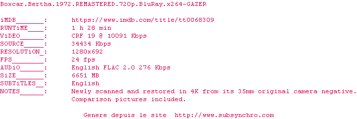 Voir le nfo de la release Boxcar.Bertha.1972.COMPLETE.BLURAY-watchHD