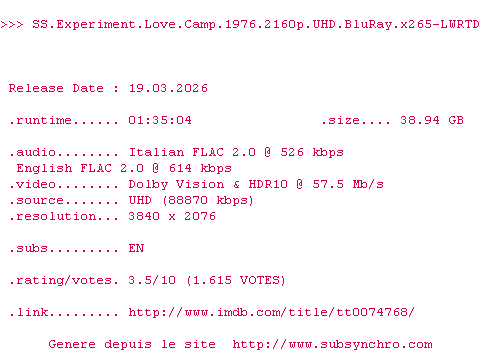 Voir le nfo de la release Rich.And.Strange.1931.1080p.BluRay.x264-GUACAMOLE