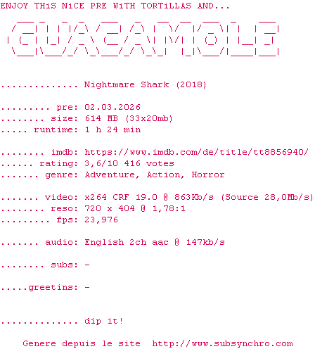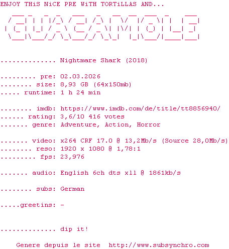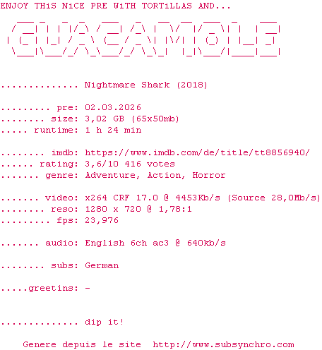 Voir le nfo de la release Trailer.Park.Shark.2017.BDRiP.x264-GUACAMOLE