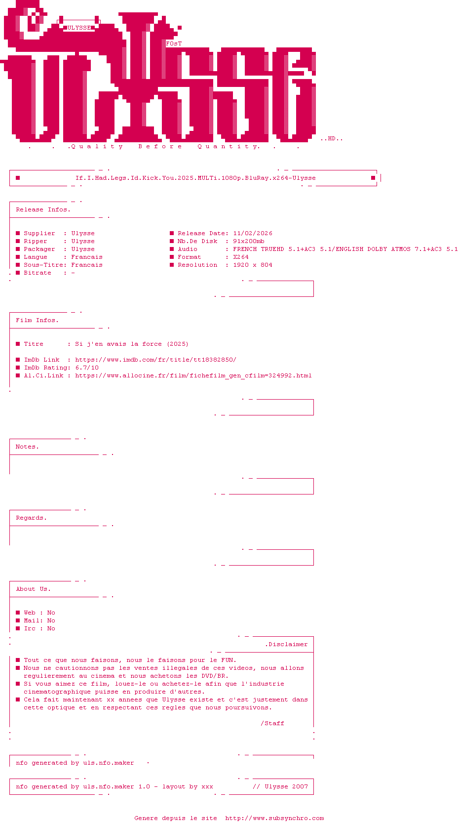 Voir le nfo de la release If.I.Had.Legs.Id.Kick.You.2025.1080p.BluRay.H264-RiSEHD