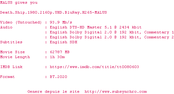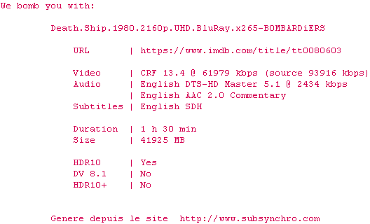 Voir le nfo de la release Spawn.1997.MULTi.2160p.WEB.H265-UKDHD
