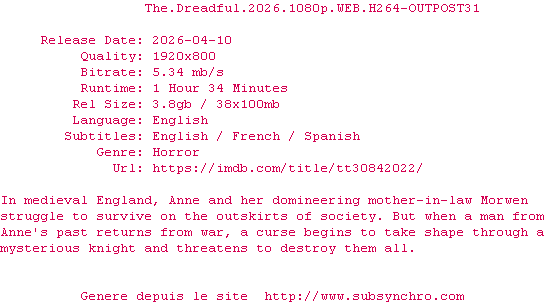 Voir le nfo de la release The.Dreadful.2026.1080p.WEB.H264-OUTPOST31
