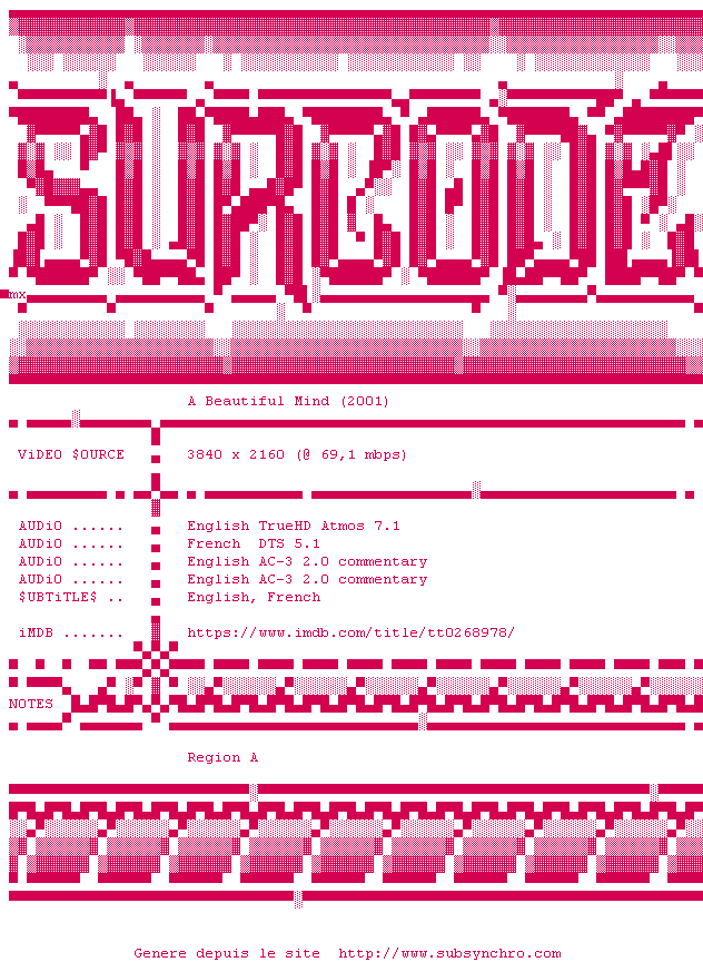 La release A.Beautiful.Mind.2001.2160p.UHD.BluRay.x265-SURCODE est en 4K