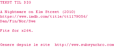 Voir le nfo de la release A.Nightmare.On.Elm.Street.2010.NORDiC.SUBPACK.BluRay-TTD