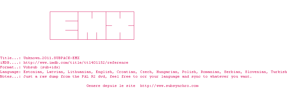 Voir le nfo de la release Unknown.2011.SUBPACK-EMX